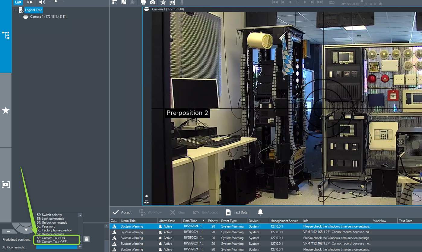 7. You will afterwards have this custom tour start & stop available in the Operator Client as can be seen below: