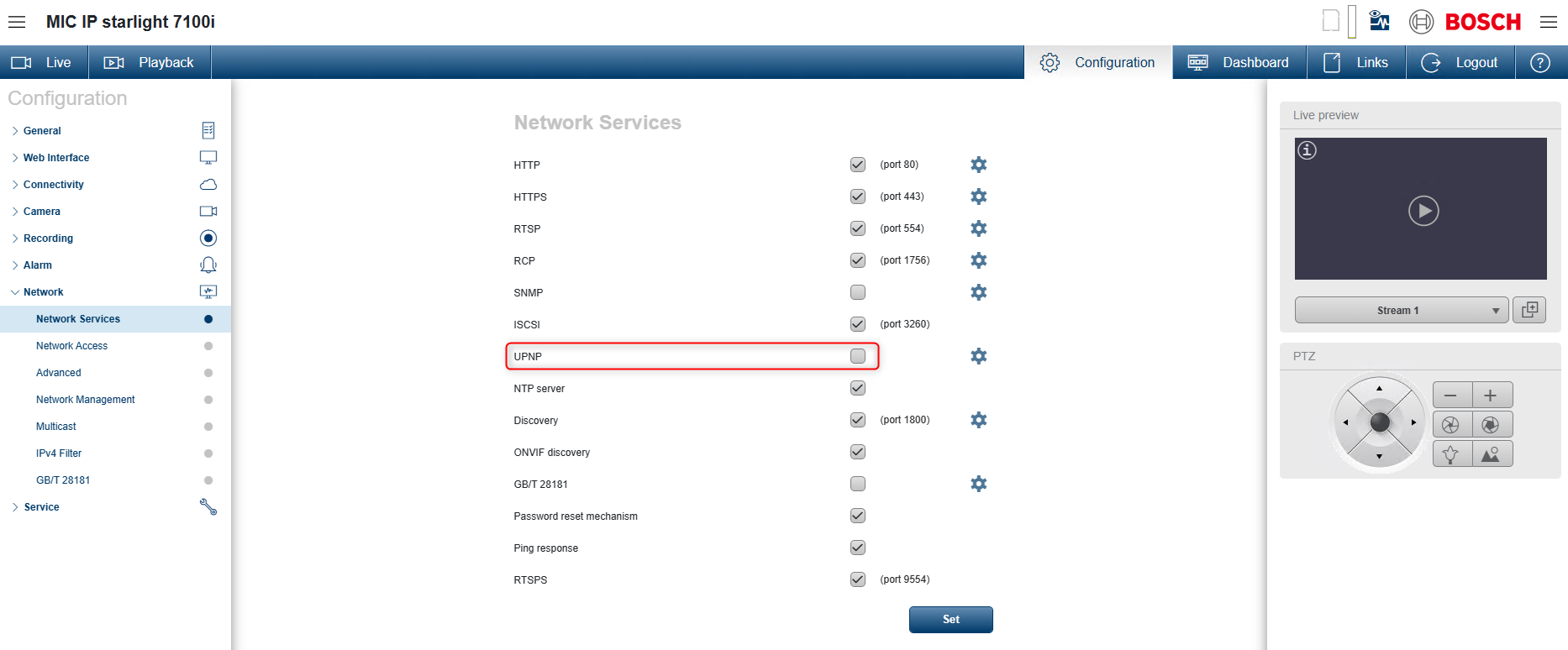 How to disable UPnP of Bosch IP cameras & multicast scan from Configuration Manager?