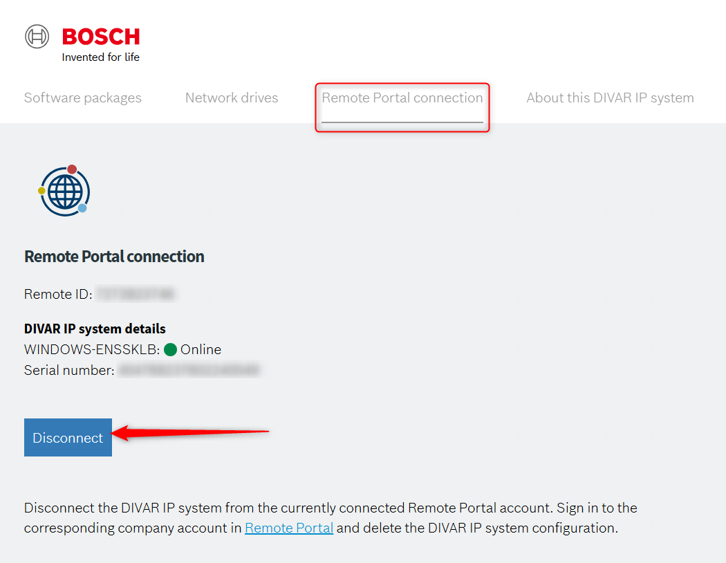 How to disconnect DIVAR IP from Remote Portal via System Manager?