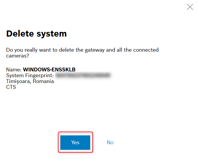 5. Click Yes to remove the system from Remote Portal