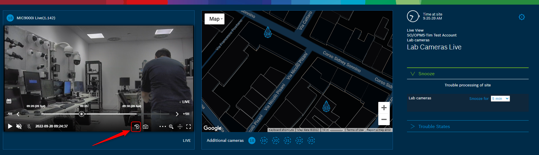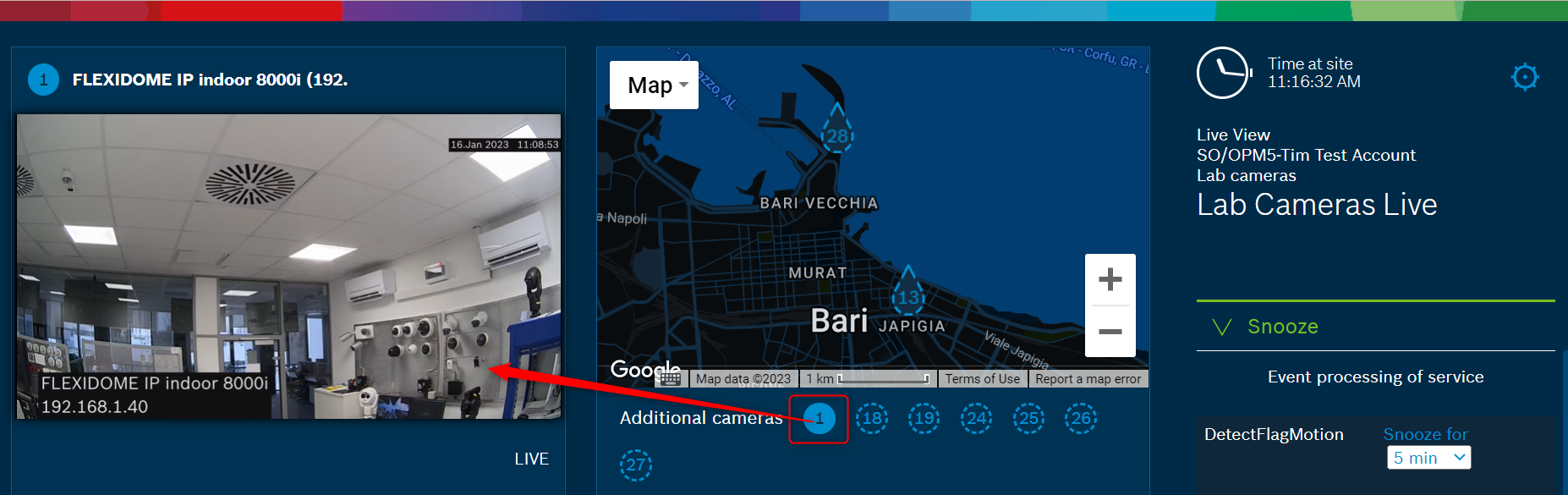 2. After selecting your camera, its Live view will be displayed on the left side: