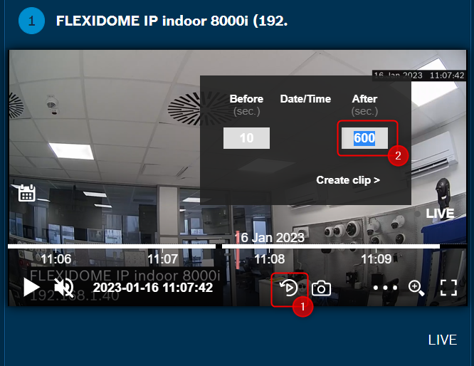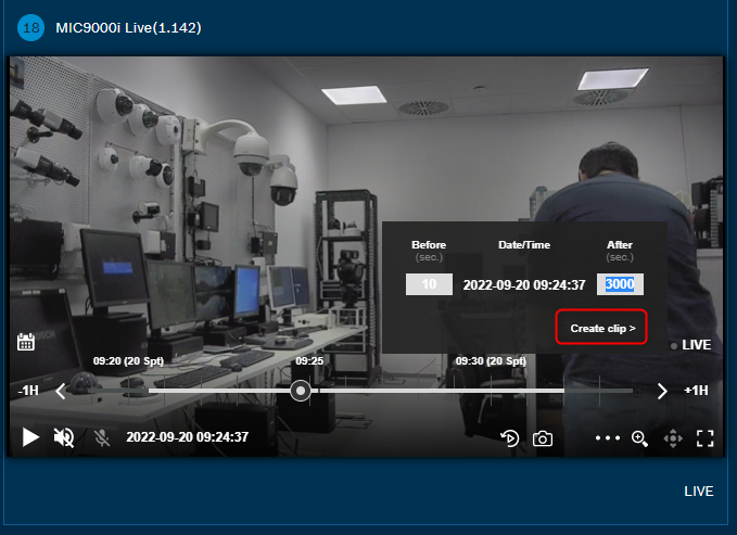 3. Hover on the Live view image and move the timeline to select the start time when you want the clip to be exported: