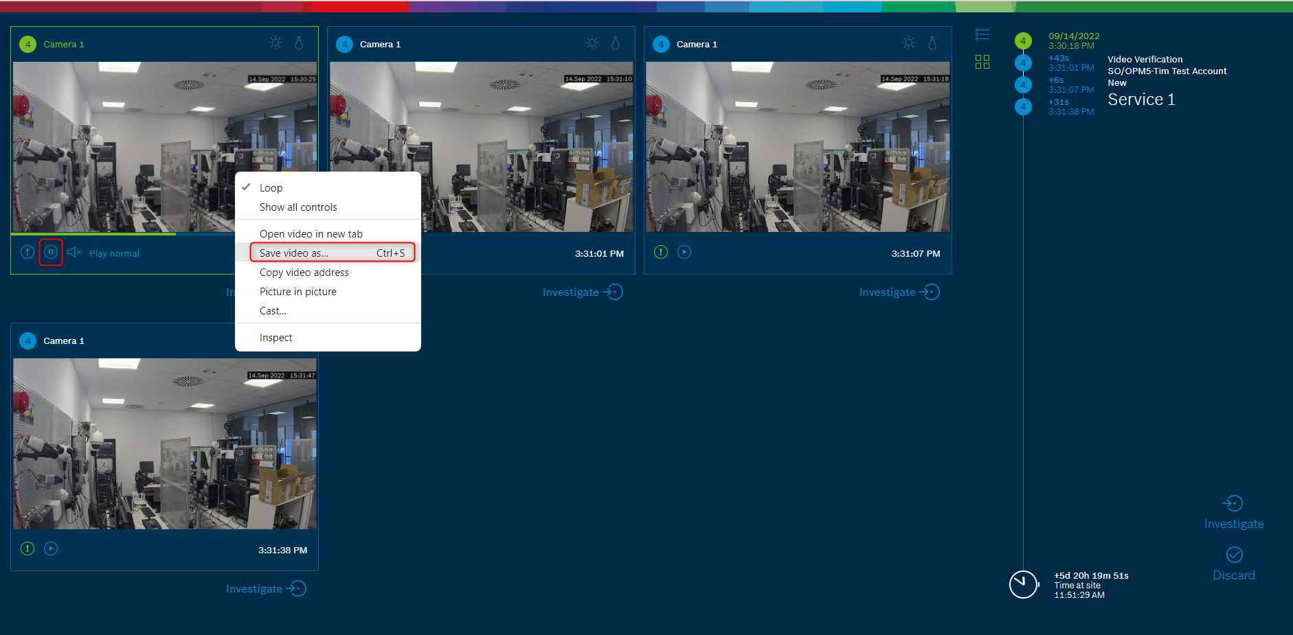Another 2 ways to export a clip is from Investigation Mode or by accessing the camera from the Live Views menu.