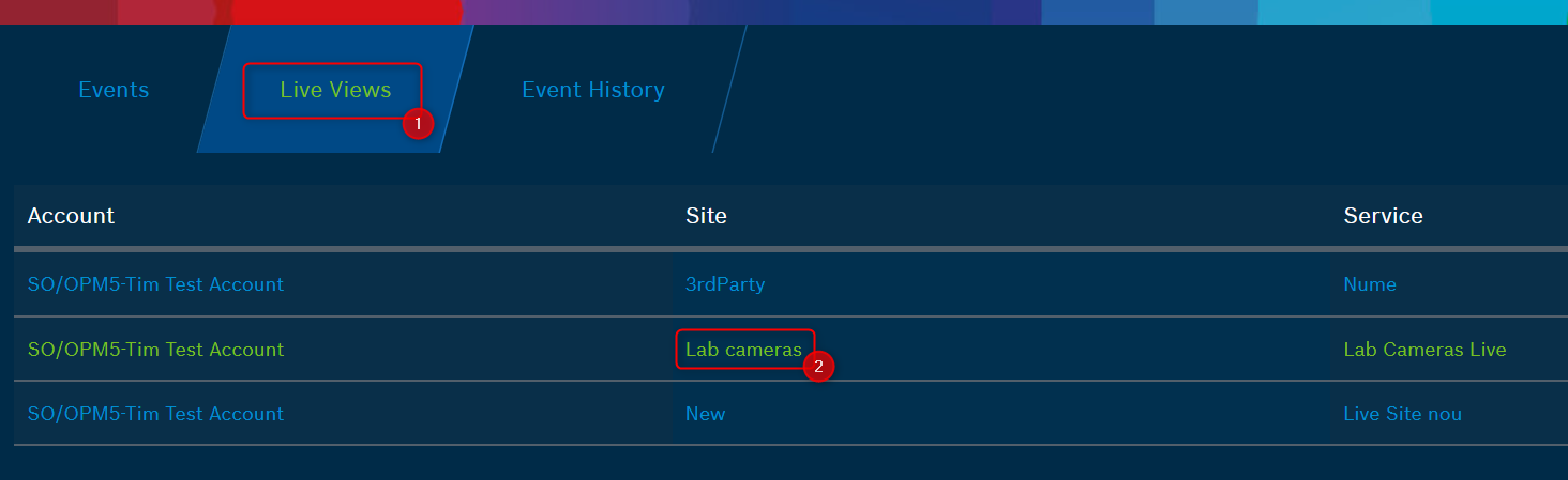 1. Go to the Live Views menu and select the Site where the camera is located for which you want to export the Cloud Recording for it: