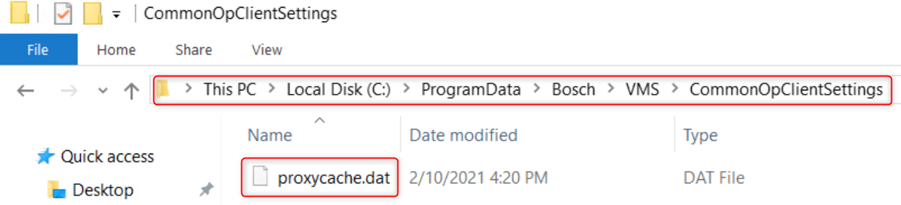 Navigate to: Computer > Windows (C:) > ProgramData -> Bosch -> VMS -> CommonOpClientSettings and delete the "proxycache.dat" file