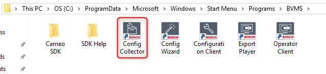 - From the Start menu, select Programs > Bosch VMS > Configuration Collector or