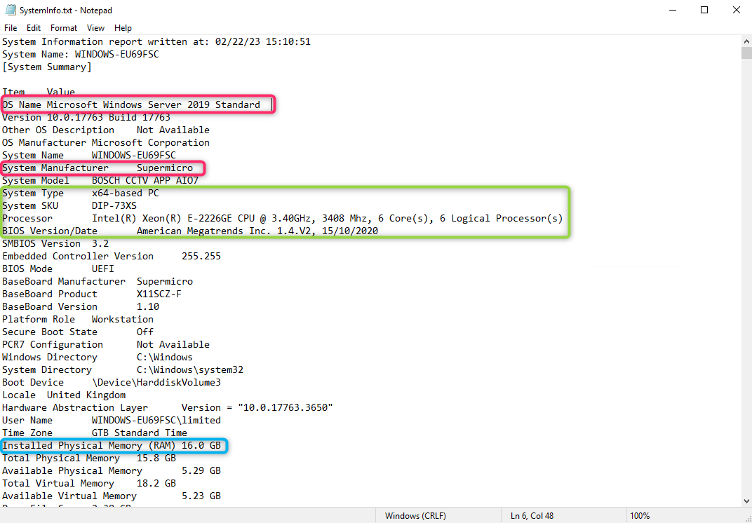 - System manufacturer and model (if it is an OEM device, e.g Divar IP, HP Workstation)