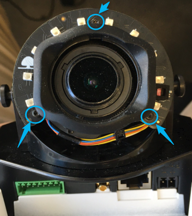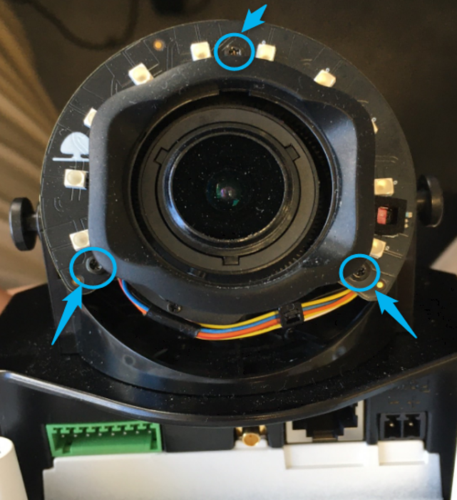 2. Loosen the 2x side screws holding the lens: 2x M2 hex screw.