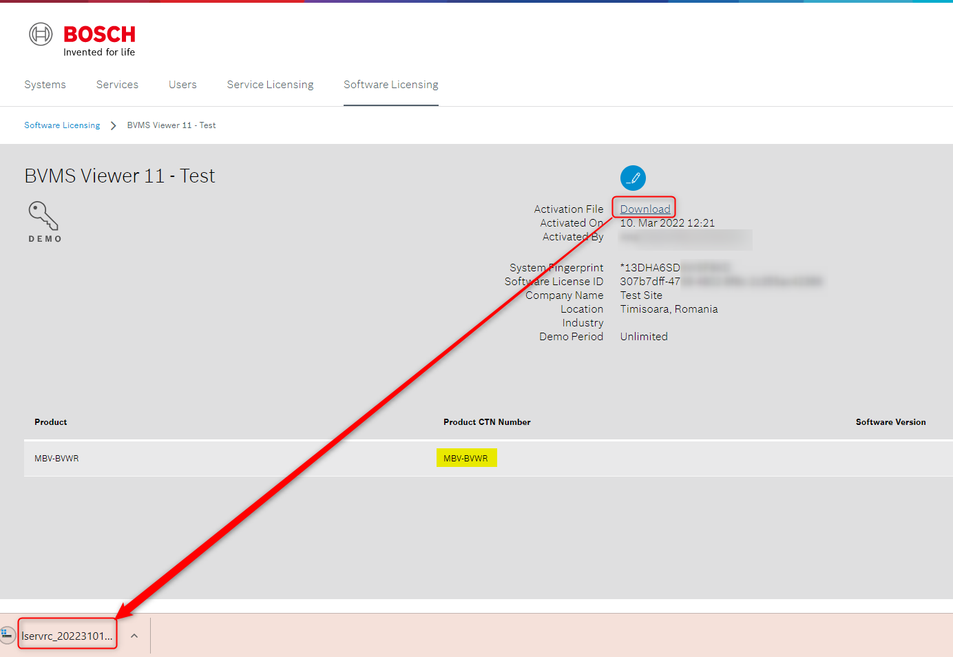 Starting with BVMS 11.0 the license activation will be done via the Bosch Remote Portal.