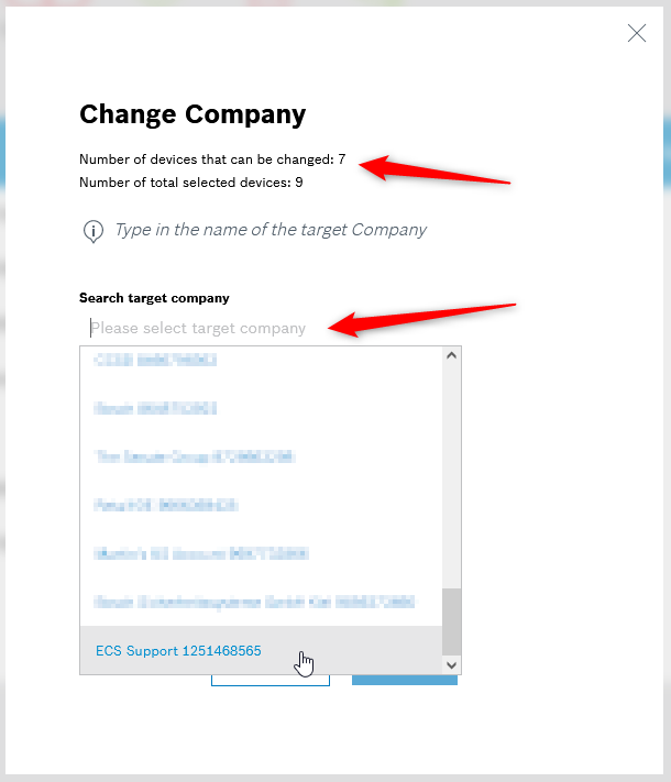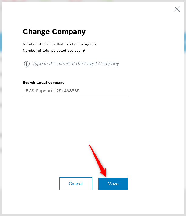 - Select the camera(s) to be moved to another company