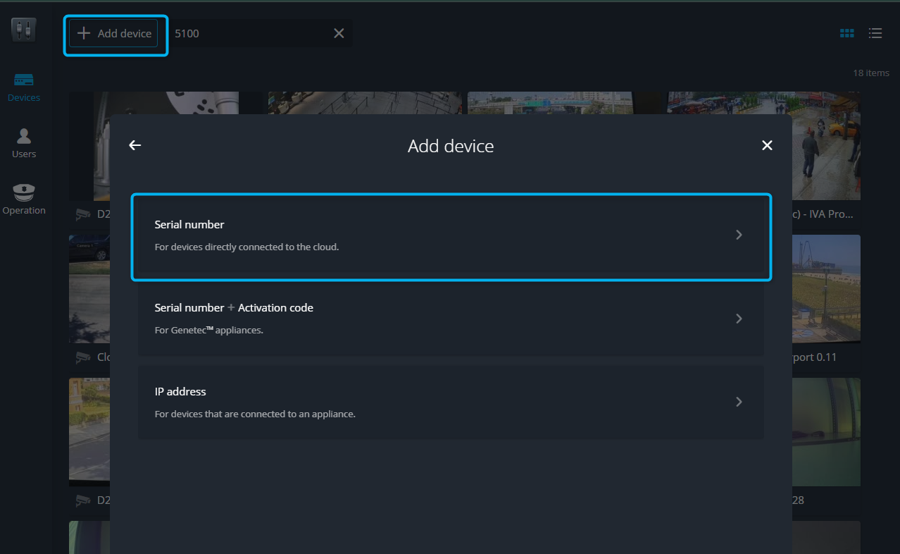 Enter the device information by selecting Serial number. For devices directly connected to the cloud.