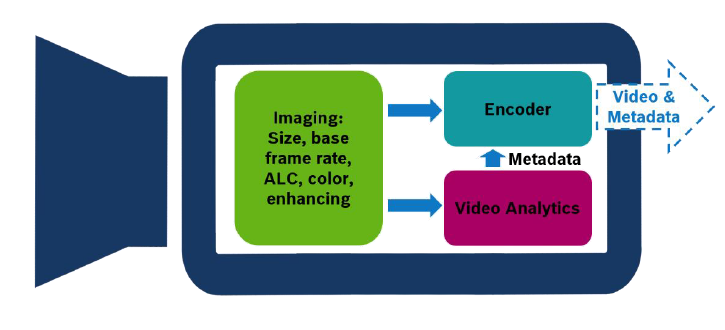 In Bosch IP cameras, the following video analytics can be available: Intelligent Video Analytics (IVA) including IVA Pro, IVA Flow, Intelligent Tracking, Essential Video Analytics, and MOTION+. For simplicity, all those will be summarized as “video analytics” in this whitepaper wherever differentiation is not necessary. Those video analytics get the images to analyze directly from the imaging block and are completely independent of the encoder, which starts processing the images in parallel. Thus, all settings influencing imaging also influence video analytics, while the encoder settings are of no importance for video analytics performance. There are a view special cases like privacy masking, display stamping and thermal cameras, which will be covered here as well.