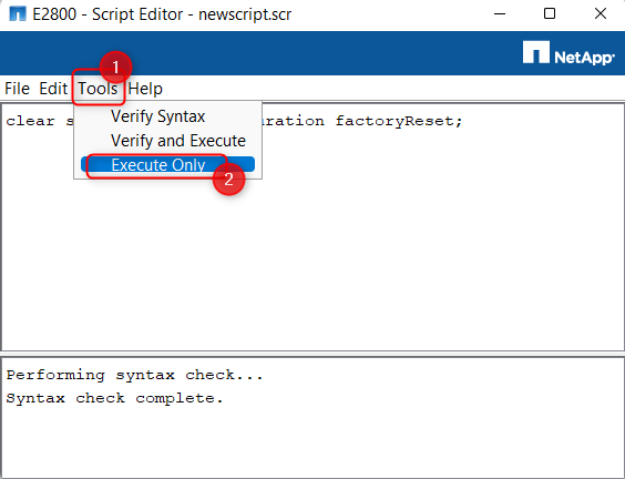 5. When the syntax check is complete, click again on the Tools option and select "Execute Only"