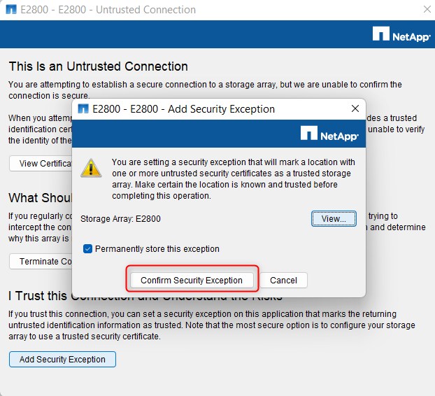 6. Add the Security Exception if the windows below will be displayed and Confirm your action:
