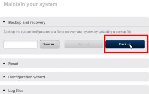 5. Once you have selected "Back up" you will be prompted to save the configuration file.