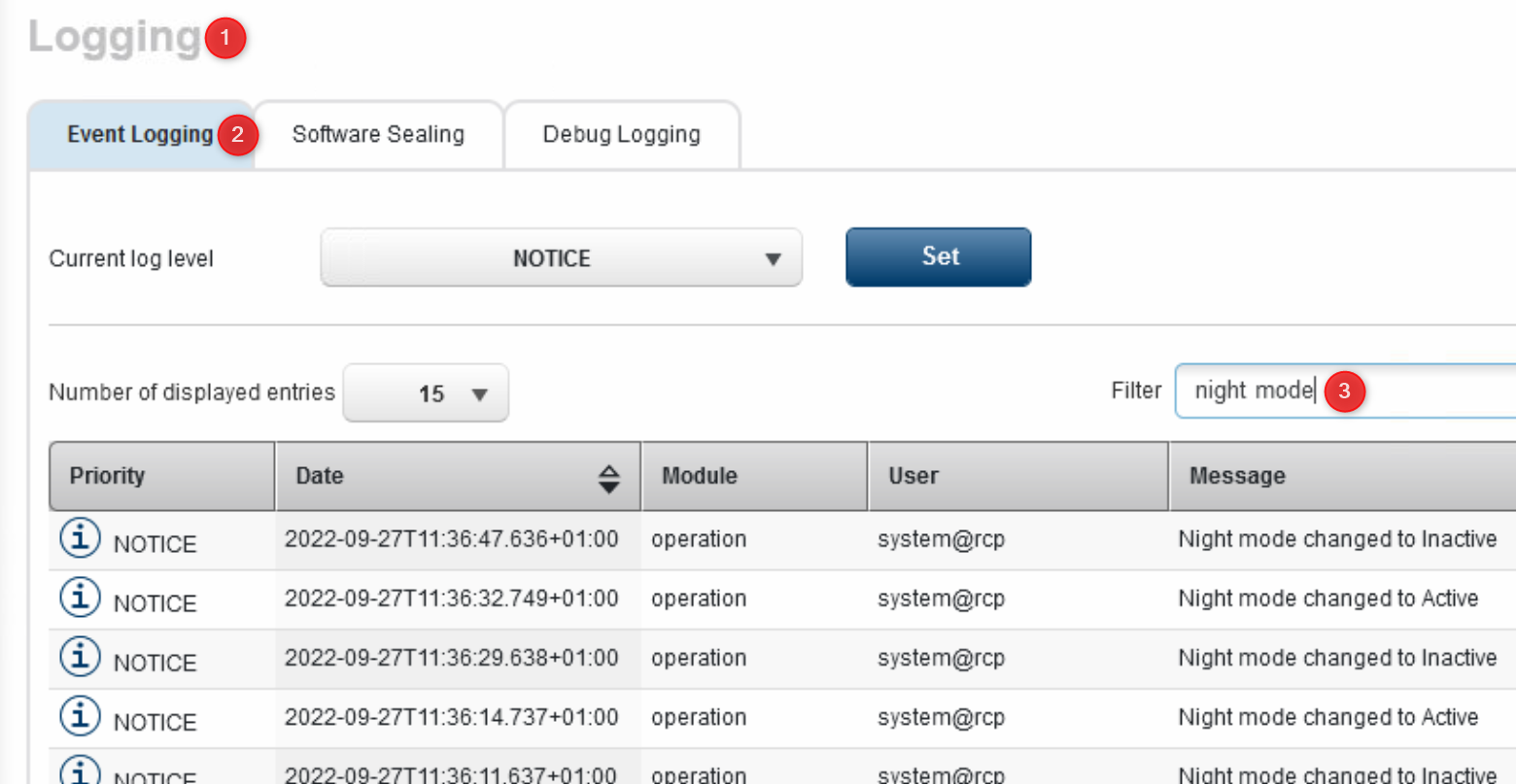 Each IR-Cut filter switch cycle is logged in long term log.