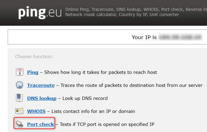 2. Also, go to "Port check" and make sure that the following ports are not blocked: