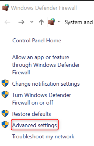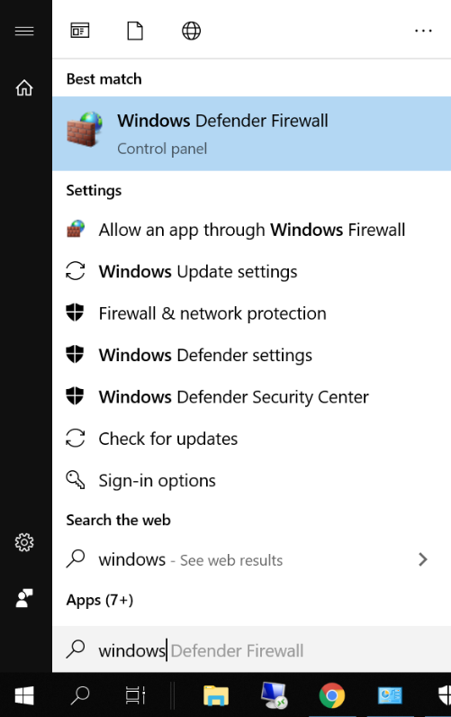 - Navigate to Control Panel, System and Security and Windows Firewall or press the Windows button and search for it.