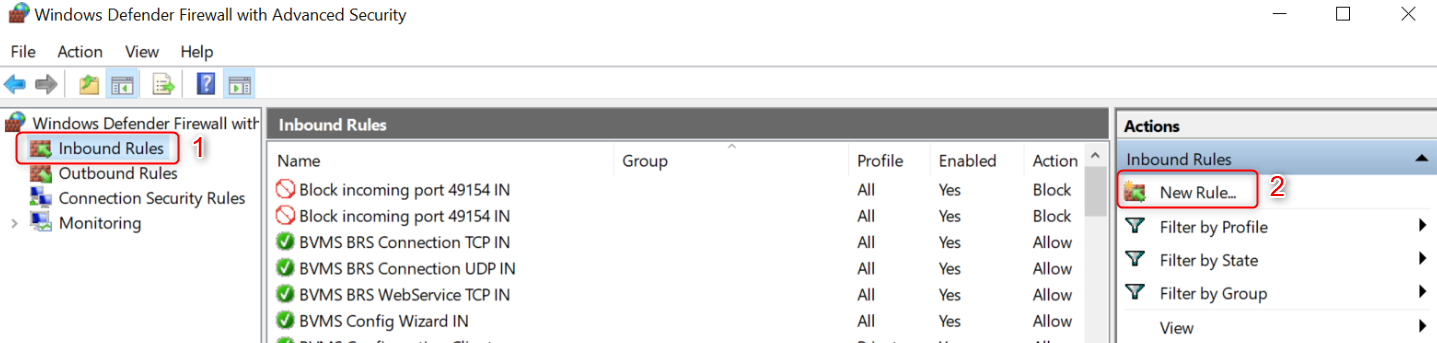 - Go to Inbound Rules and select New Rule.