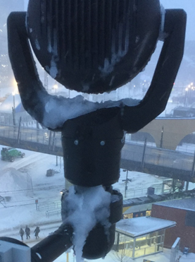 There is a possibility for ice to build up either on the base of the unit (upright) or on the camera head(inverted) during a severe winter storm.