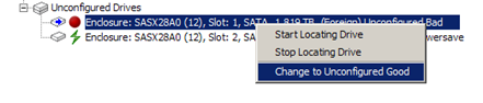 If the Drive state is Unconfigured Bad, please set it to Unconfigured Good