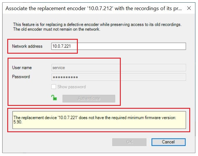 The replacement functionality is not applicable for cameras running firmware older than 5.90.