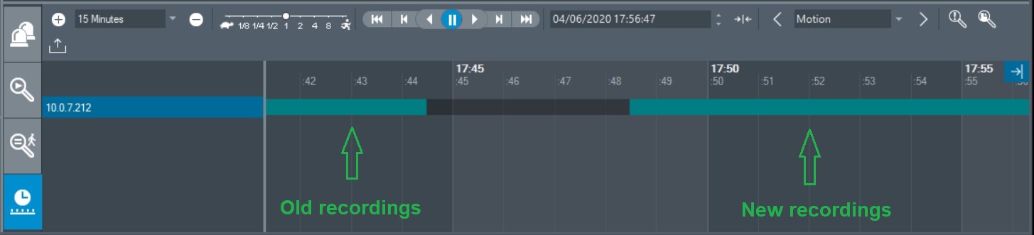 Recording of the old camera is now accessible on the timeline of the new camera.