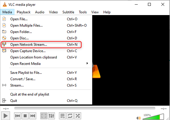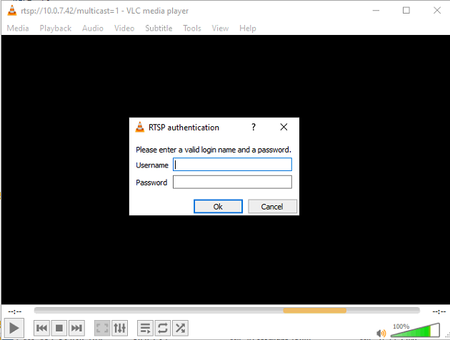 File > Open Network > Play > Login with camera’s credentials > Ok