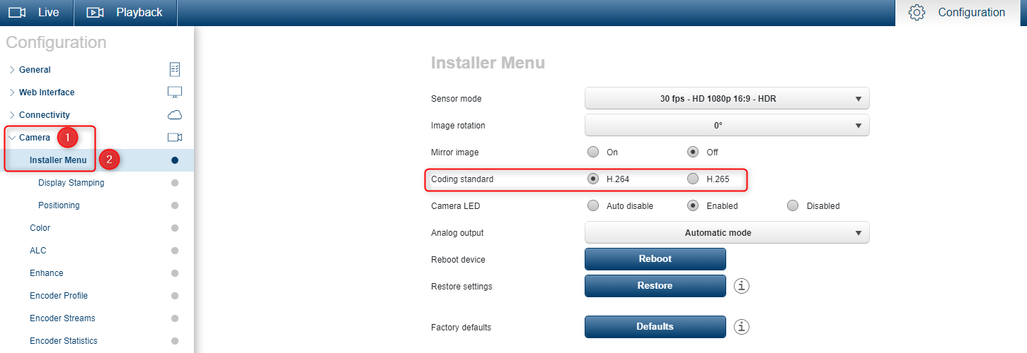- Next to the Coding standard you can choose H.264 or H.265
