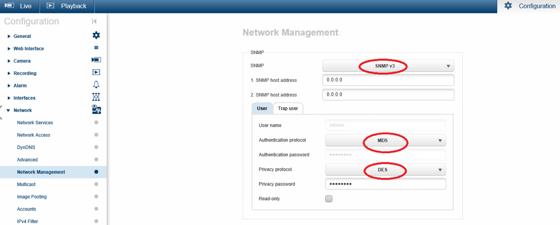 Note: Please keep in mind that for SNMP v3 only the the Standard MIB II file is supported. This means that only general network device performance monitoring parameters can be requested. There is no Bosch Private MIB II extension for SNMP v3. For exact support details check - What should you know about SNMP and Bosch cameras SNMP support?