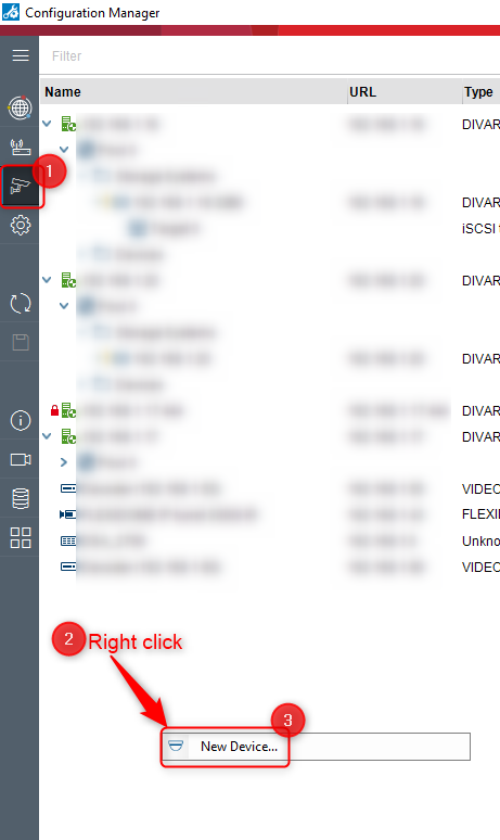 1. Start the Configuration Manager and add the local VRM to the System (My devices Tab).
