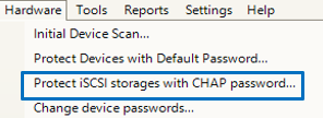 2. Open the Global CHAP password dialog in BVMS: Configuration Client: Hardware → Protect iSCSI storage with CHAP password.