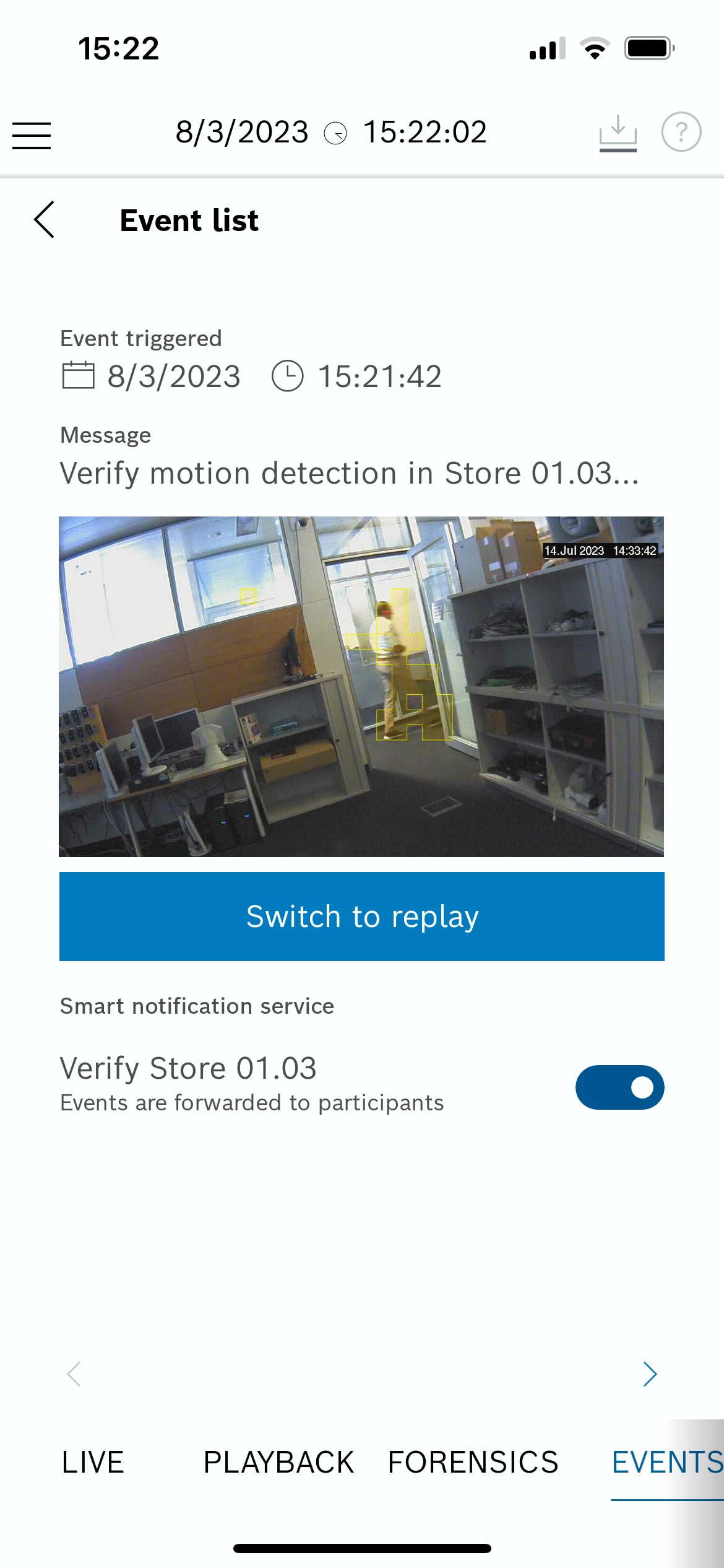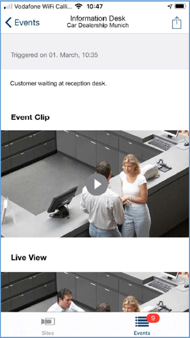 Detection, notification and storage of events like warehouse access, POS transactions or goods delivery enable efficient monitoring and resolution of critical events for the business owner.