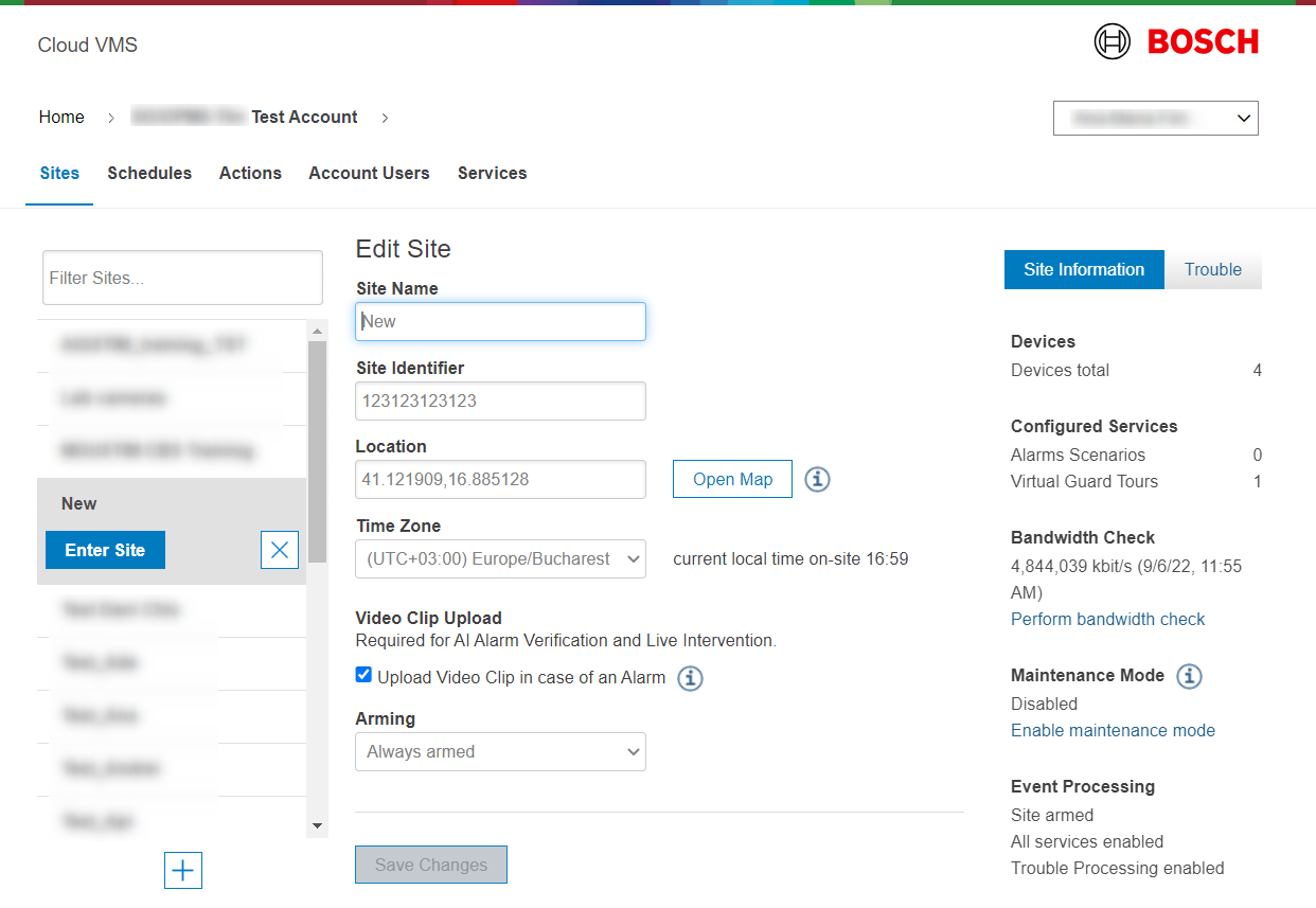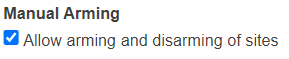 Site arming/disarming is not yet supported (will follow in a later release)