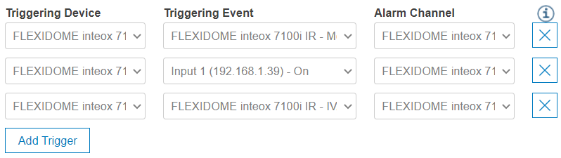 If the trigger already implies an alarm channel (e.g. motion, VCA), the alarm channel is fixed and cannot be changed. In all other cases the alarm channel can configured to any channel of this site.