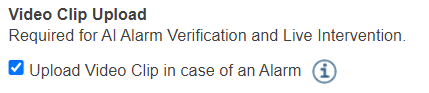 4. Enable 'Video Clip Upload' if required. (If video clip upload is disabled, an alarm snapshot is stored).