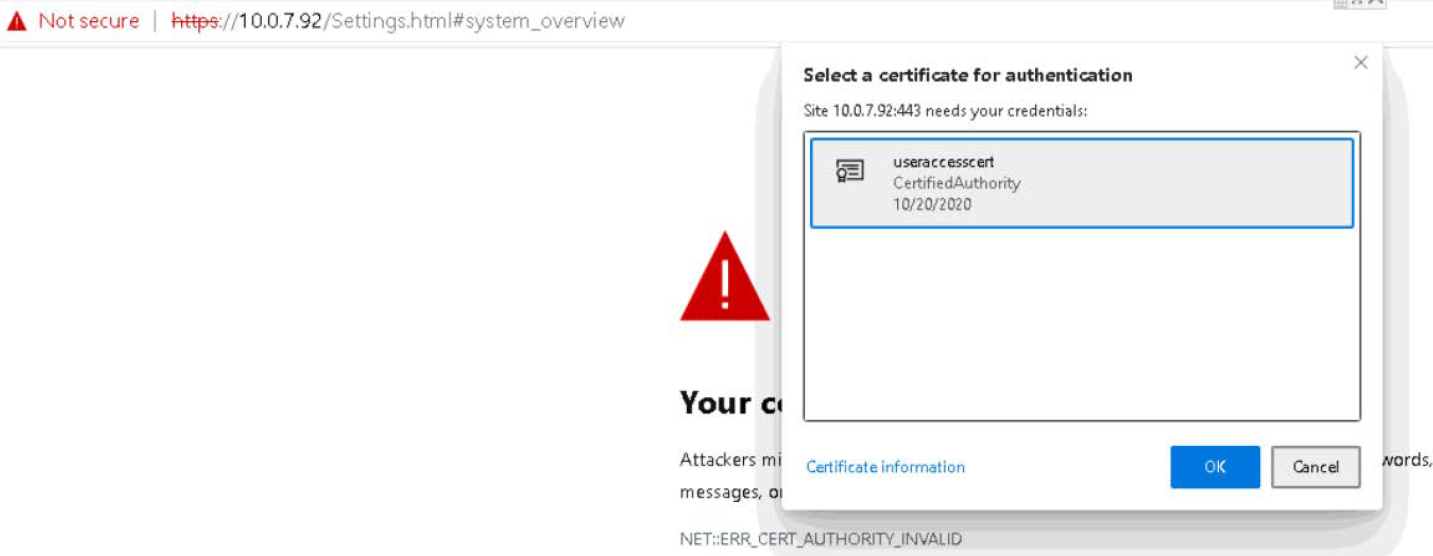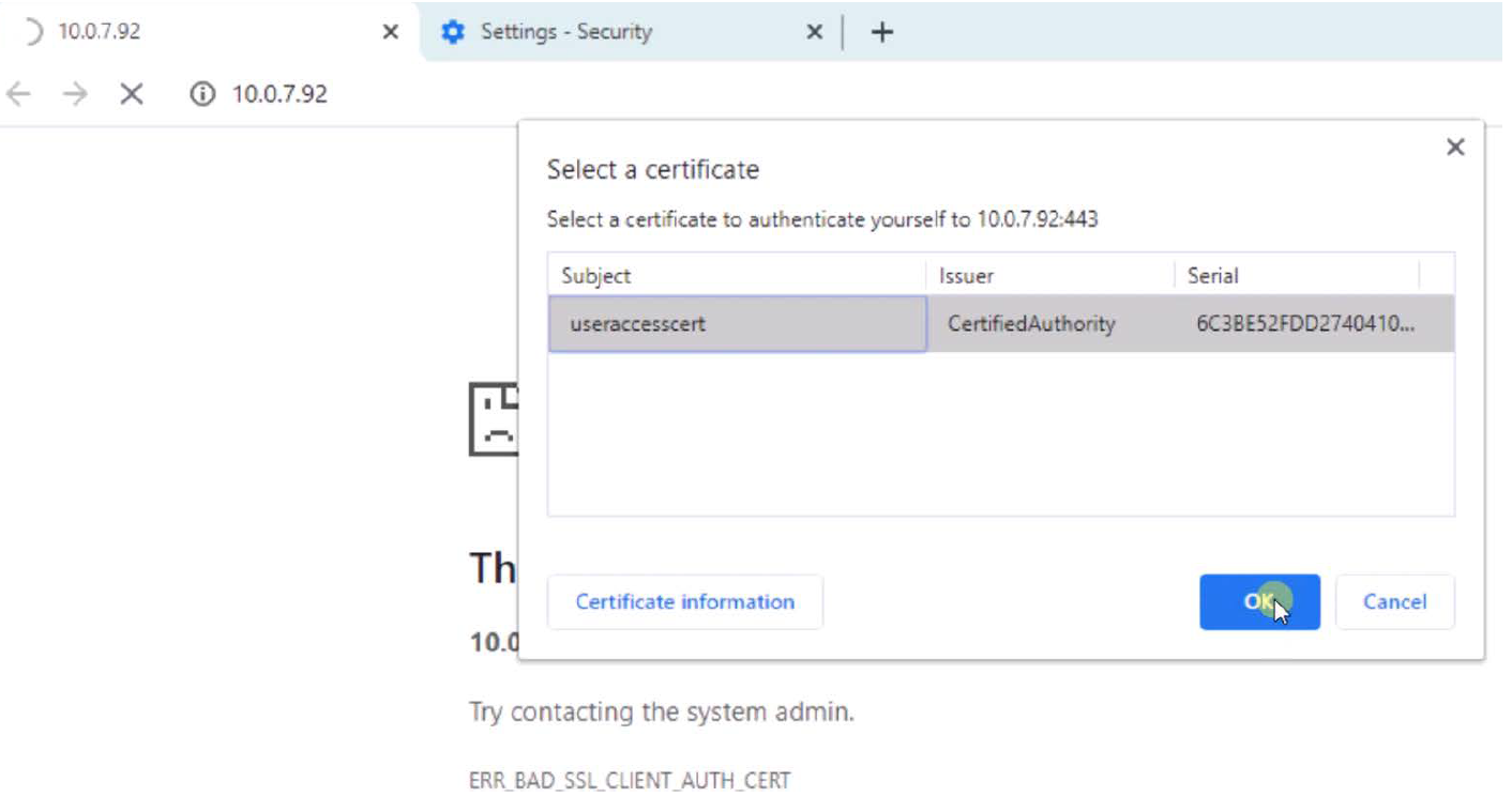 To solve, import your “CA certificate > CertifiedAuthority.crt”