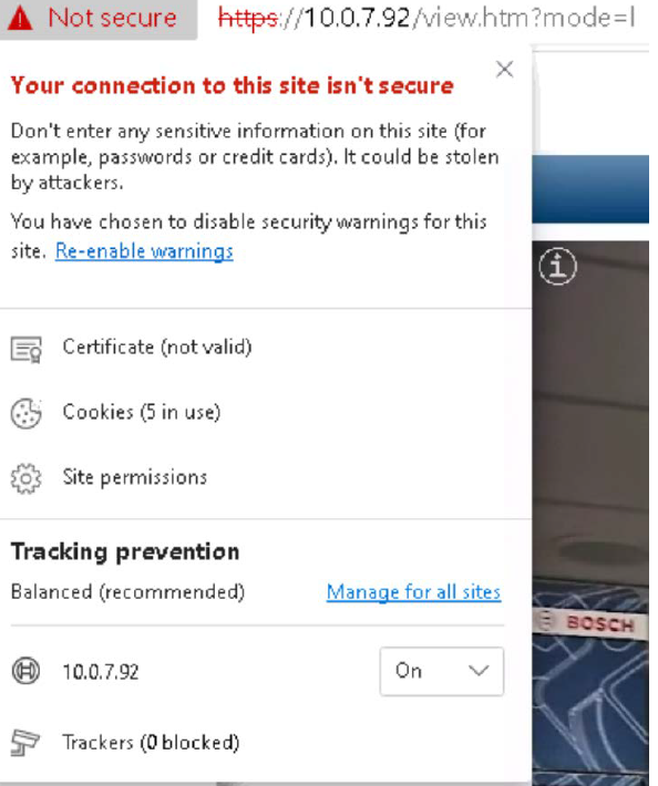 g. When you now open the camera webpage via HTTPS in a browser (Edge or Chrome), it shall prompt you to accept the certificate. After pressing OK, you can access the camera