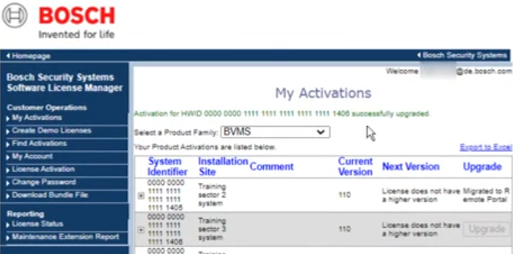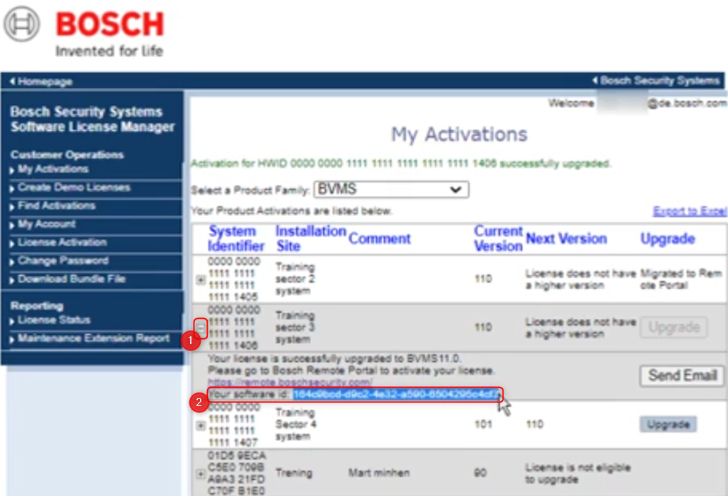 2. Upgrade the license in Bosch Software License Manager System (SLMS)