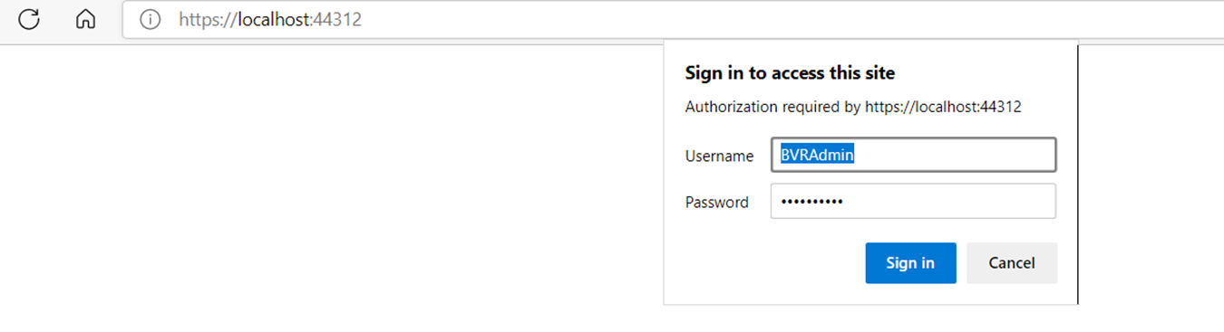 3. Provide BVRAdmin user credentials and Sign in.