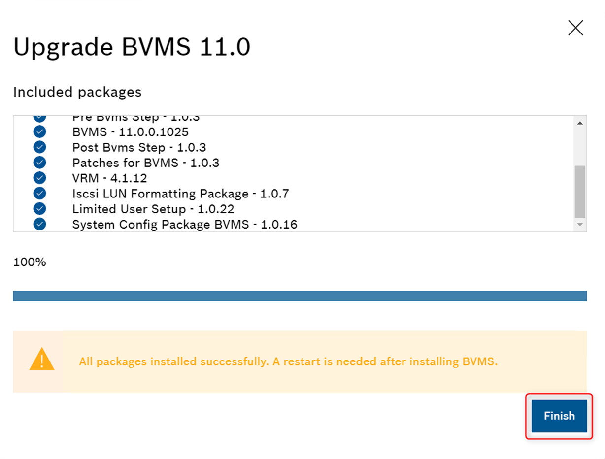 5. When all packages are installed successfully, click “Finish” button and perform a restart of the unit if this is not automatically done.