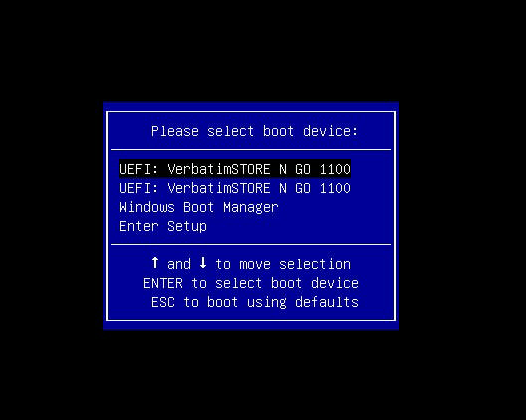 - While starting, press F11 to go into the Boot device selection Screen
