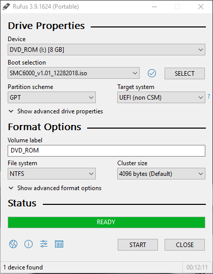- Create the USB Boot Medium like shown in the Picture (this can take up to 15 minutes)