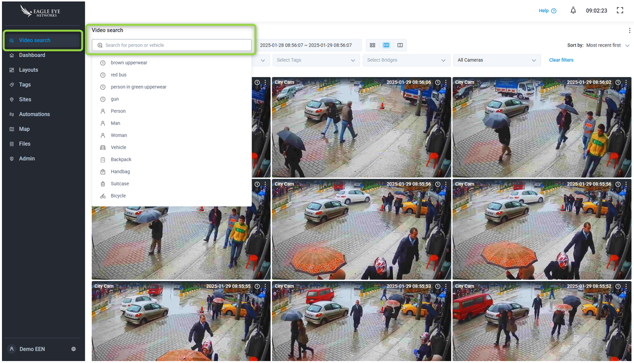 Video Search allows users to search for various objects and their attributes to quickly find the desired video.