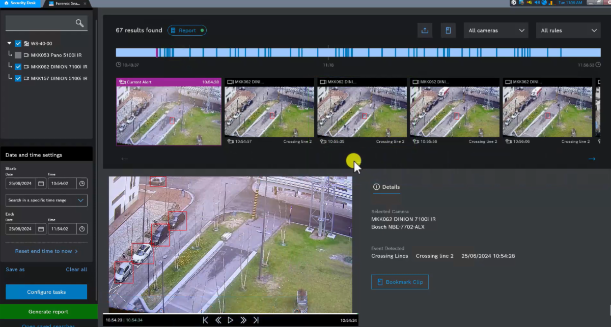 When the Bosch Forensic Search Plug-in is installed and configured, it can be used from Genetec Security Desk.