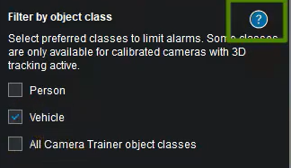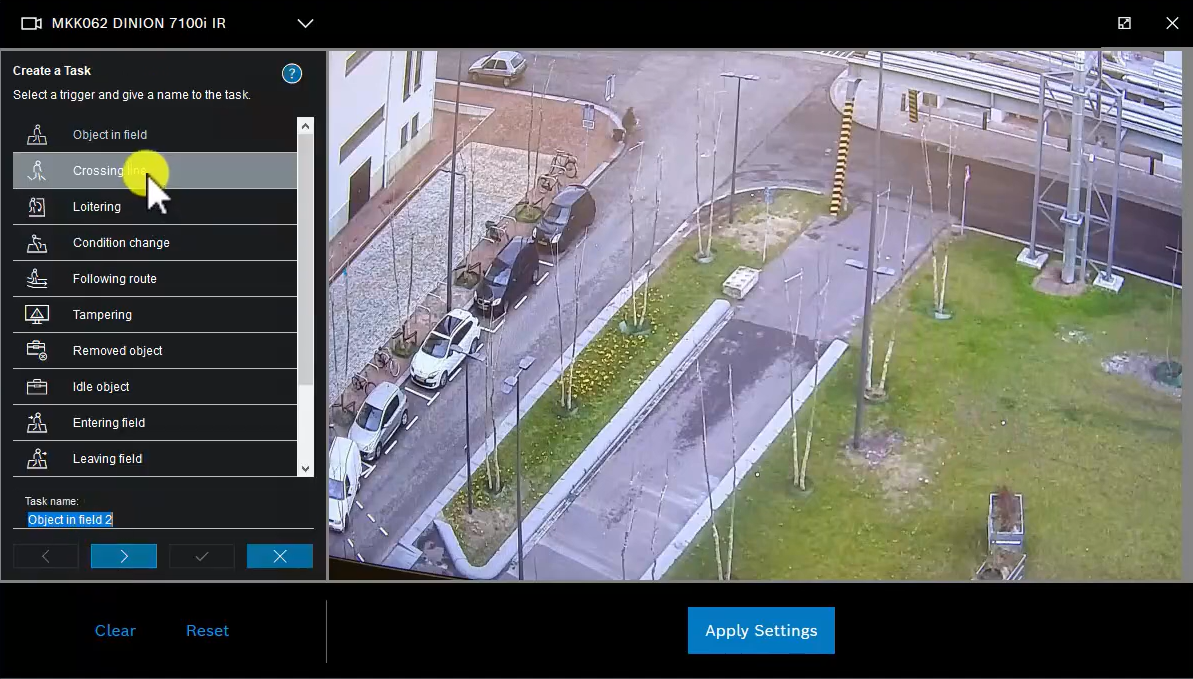 For this Crossing Line task, various object classes may be available depending on the camera model and analytics settings.