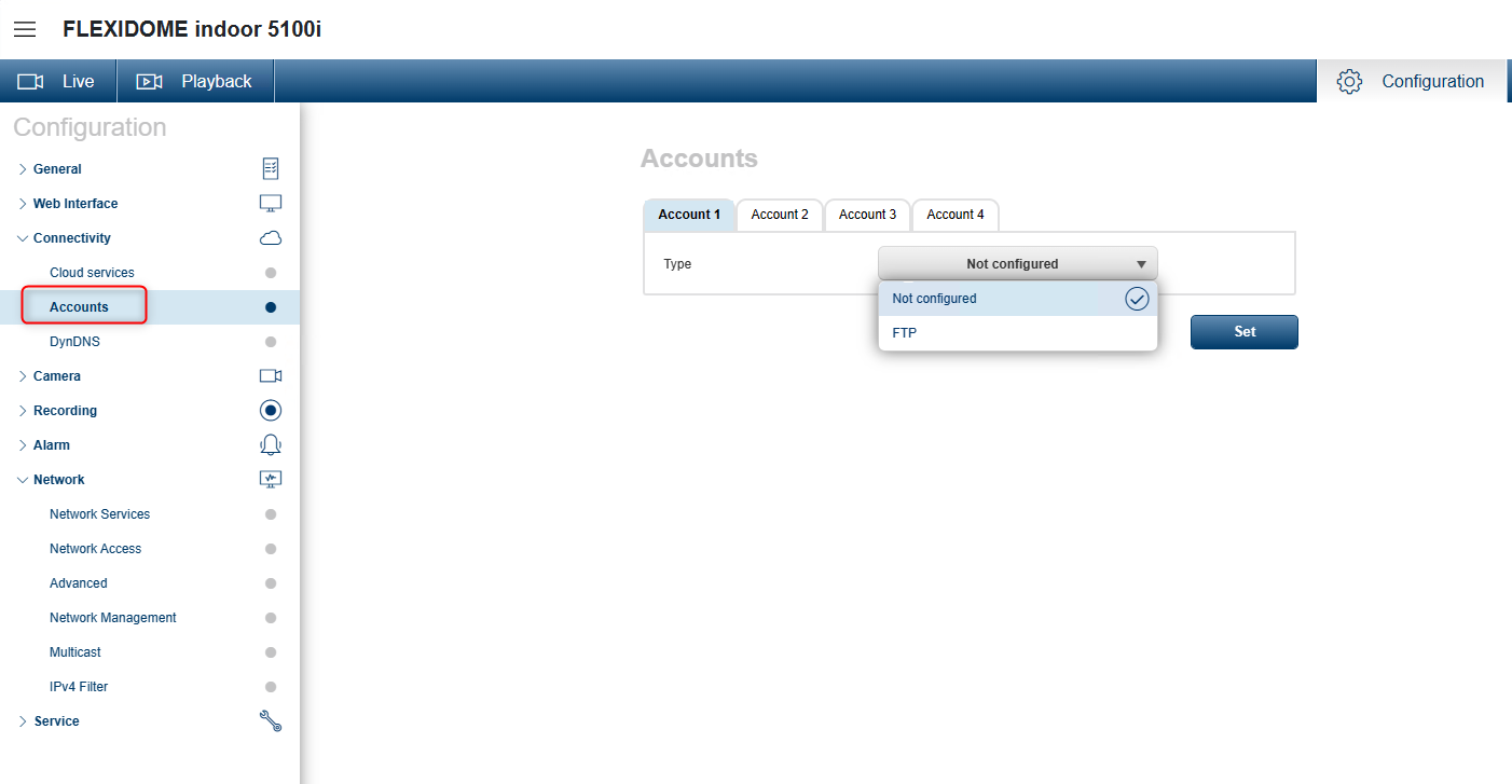 Note: In newer Firmware versions, the "Accounts" submenu can be found under the "Connectivity" menu: