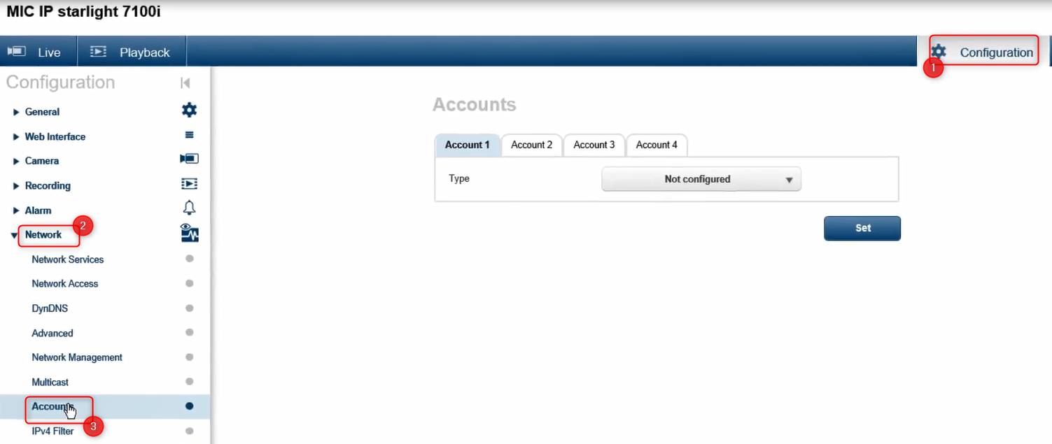 Go to Configuration > Network > Accounts