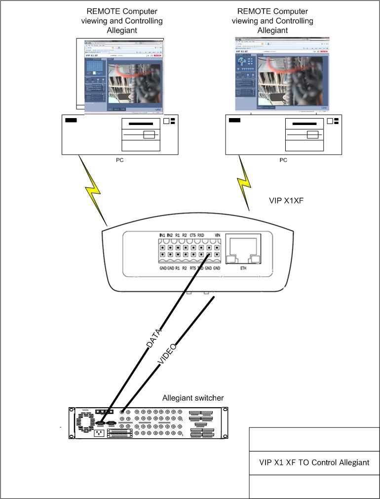 Connect Allegiant to the VIP X1 XF as per attached drawing and connect VIA Internet Explorer to the VIP X1XF set in Allegiant mode(TC8X00).