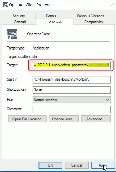 Values from 1 or 2 must be added in "Target" field from Operator Client Properties.